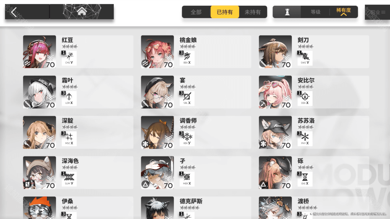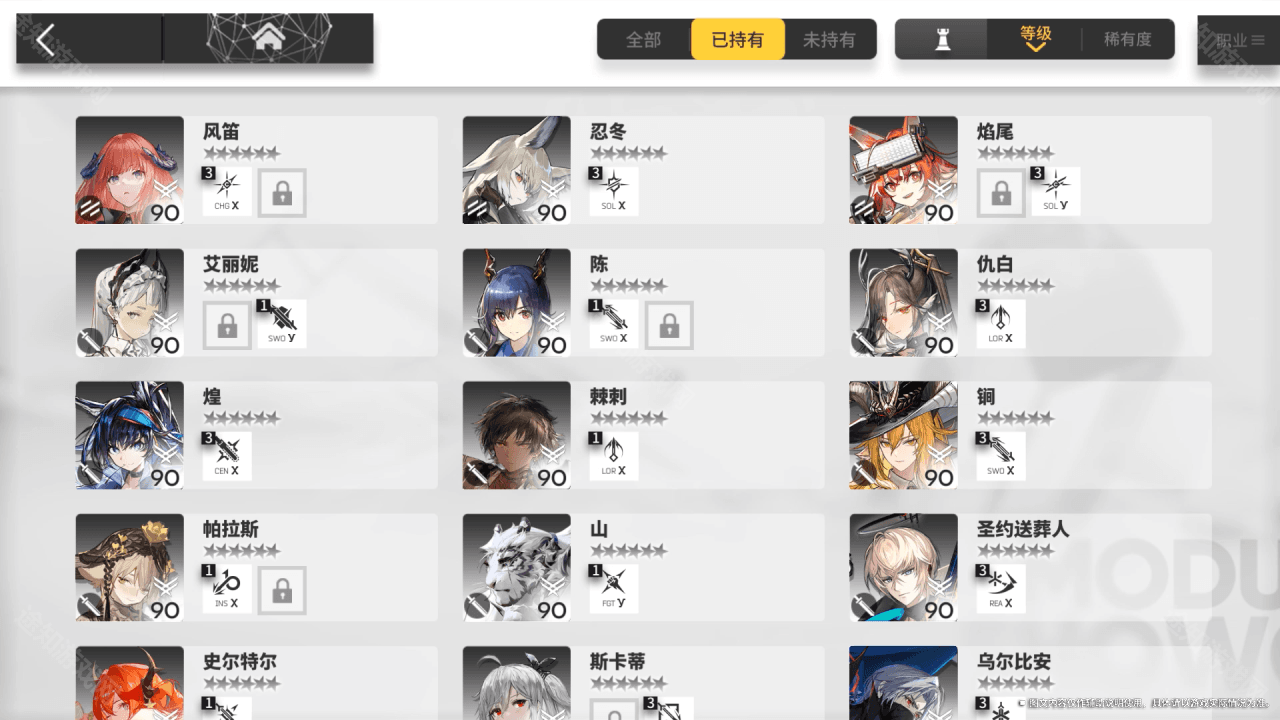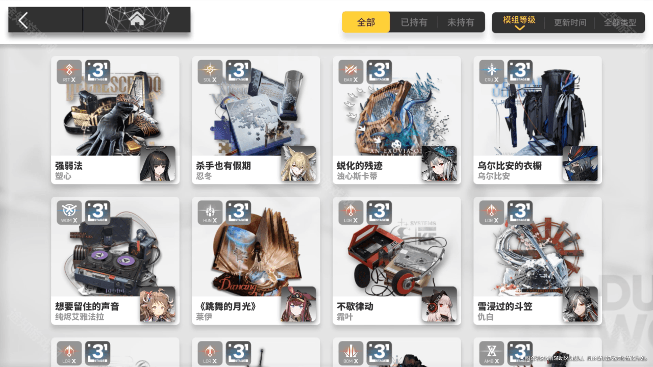展示已获取的拥有模组的干员。