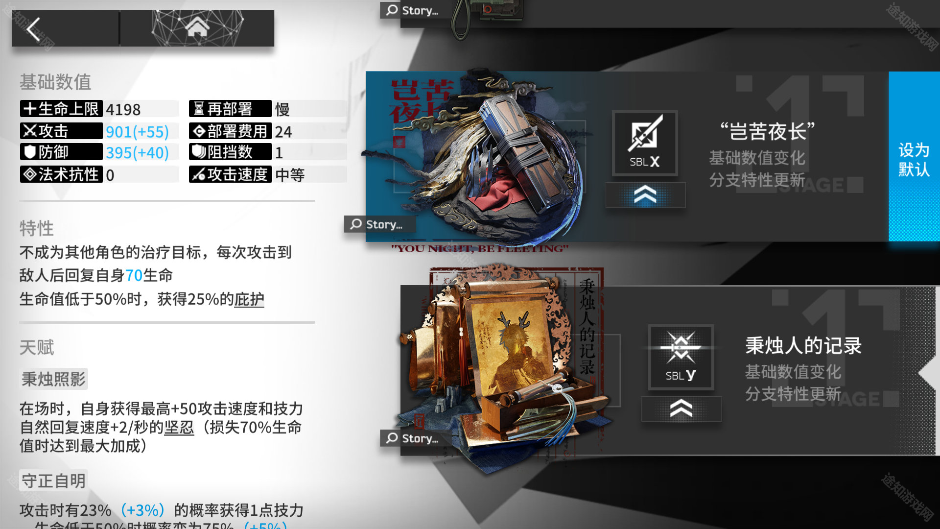 点击未解锁模组除【解锁按钮】以外的位置,可展示干员当前等级的属性及该未解锁模组的满级信息