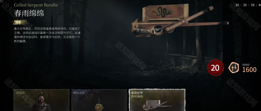 诸葛连弩皮肤(传奇)春雨绵绵:死亡之雨,这把武器蚀刻着每一次击退敌寇的记忆,在诸葛柳被选中出征时,被郑重托付给她。
