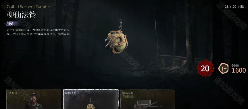 全新护符(史诗)柳仙法铃:跨越重洋,为对抗腐化而战的勇士带来祝福。愿所有猎人在这个蛇年里福运亨通,猎物丰盈。