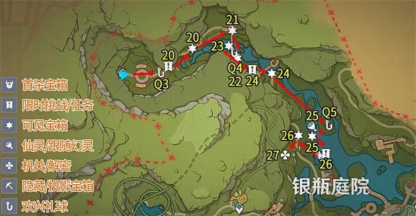 3、然后就是银瓶庭院的三十四个宝箱和礼球数量;