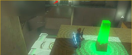 7、 当小球下降时,击打装置,下方的开关会移动出来,小球会正好落在上面,触发机关打开箭头指示的门,通过这扇门即可完成试炼。