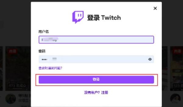 1、首先玩家需要登录twitch输入用户名和密码。