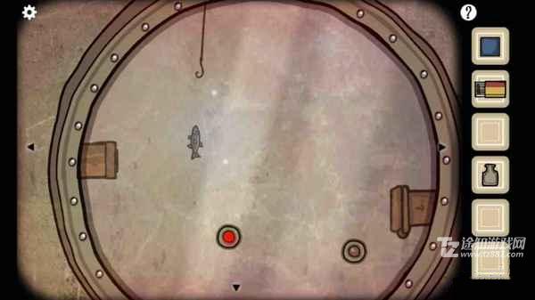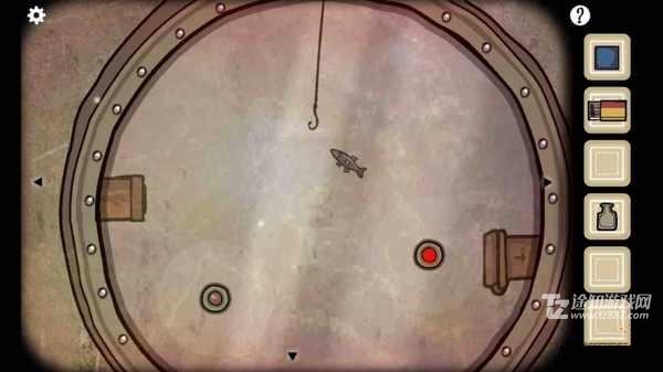 5、在窗户上移动圆钮,使鱼进入右边管道。