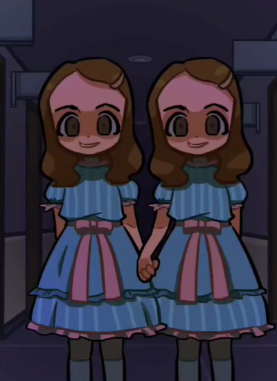 4、接下来通过猫眼向外观察三次,就会出现一对双胞胎娃娃。