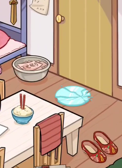 3、然后在地上发现破碎带镜子,还有对着床的鞋子。