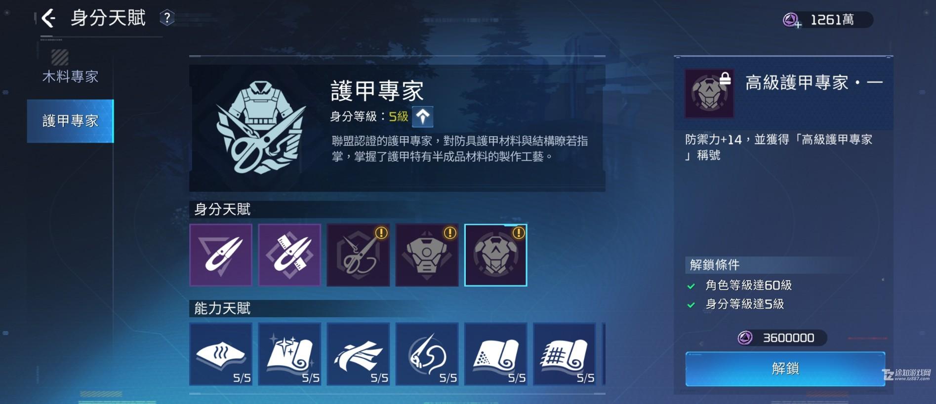 3、到达一定等级可以升级职业,然后消耗大量联盟点去解锁身份天赋。