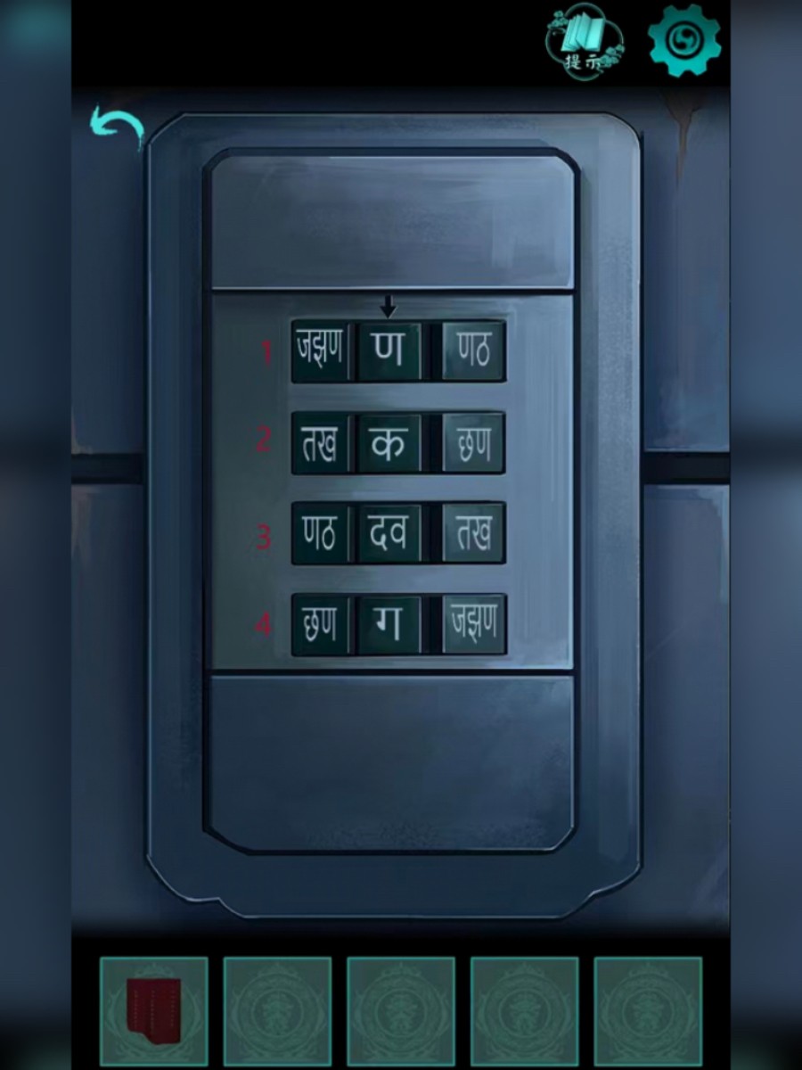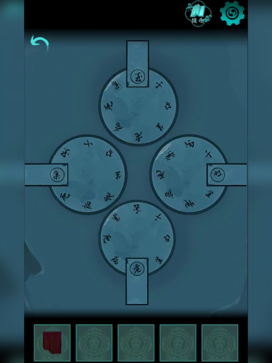 4、回到石洞口,把图腾放在石洞左边的墙上,打开机关,结合经幡和石门上的字,获得提示,根据提示调整机关,打开石门。