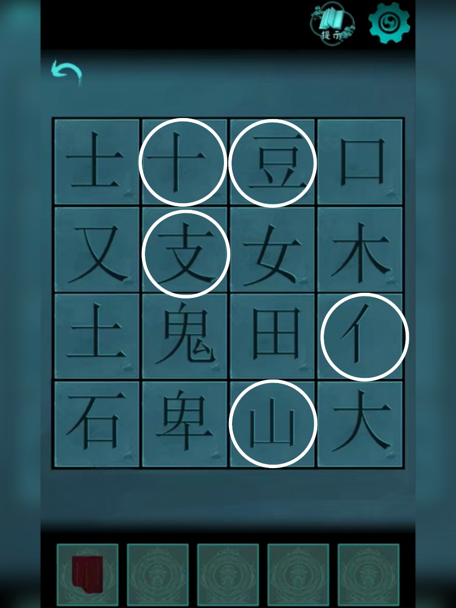 1、根据路标,结合树下的帆布,走进三岔口。走到墓葬区,路中间获得石块,地上的陪葬品获得金杯,用金杯到河里打水,拨开墓碑前的草丛,把水洒在墓碑上,字谜谜底为:鼓仙。