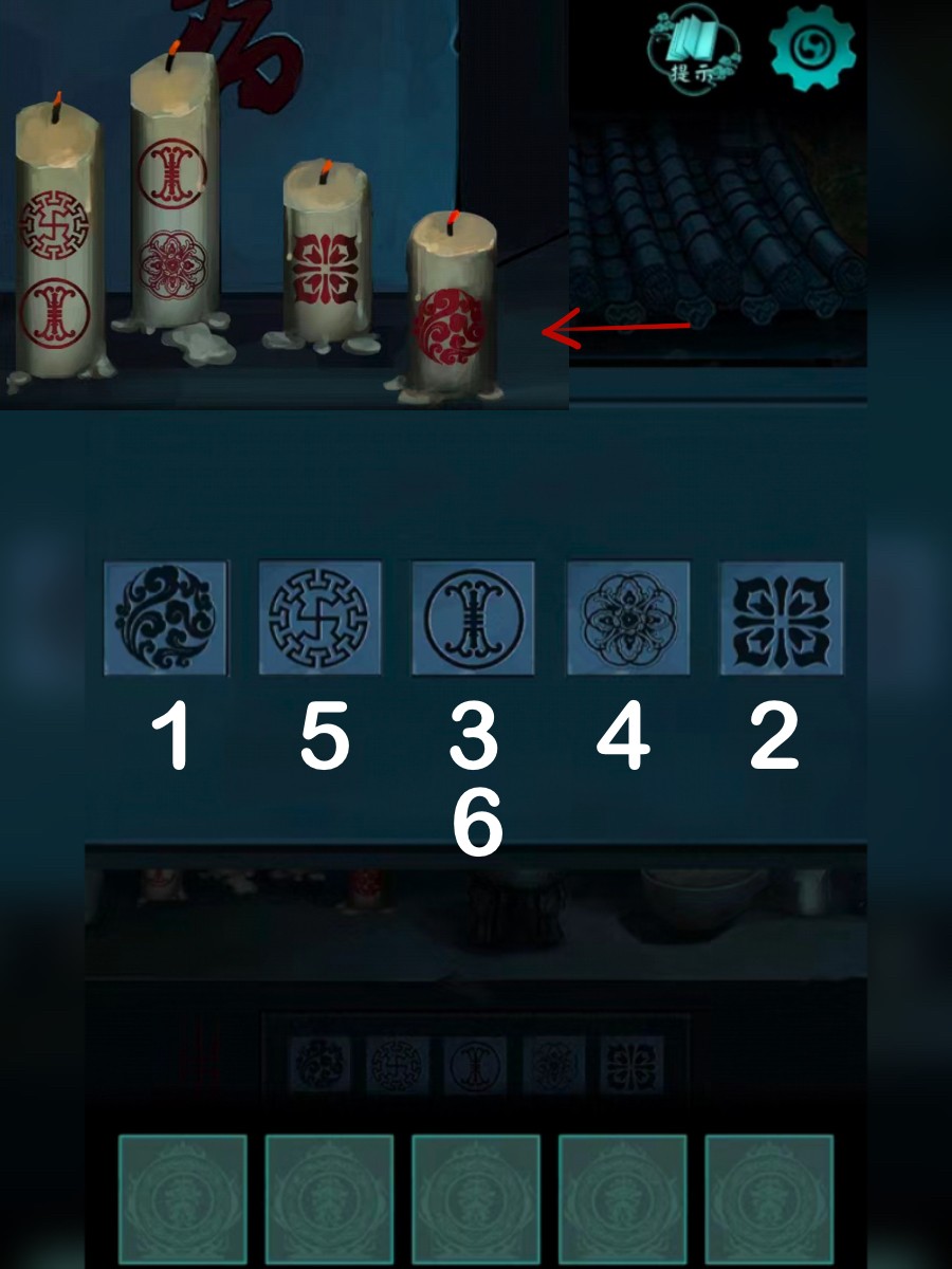 8、从柱子上到后崖,点燃小庙的蜡烛,切换场景后返回,根据蜡烛上的图案,结合远处石碑提示,点击小庙下方的机关,获得红玉棒。