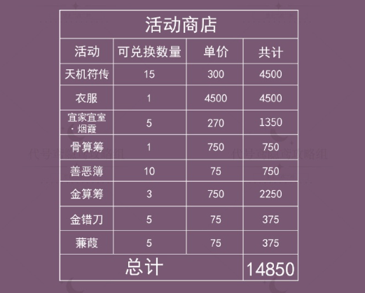 3、 商城结束后,每1点未兑换的微尘(活动积分)将换算成五铢钱*400,通过邮件补发,请殿下注意及时兑换。