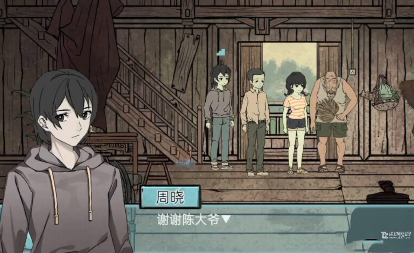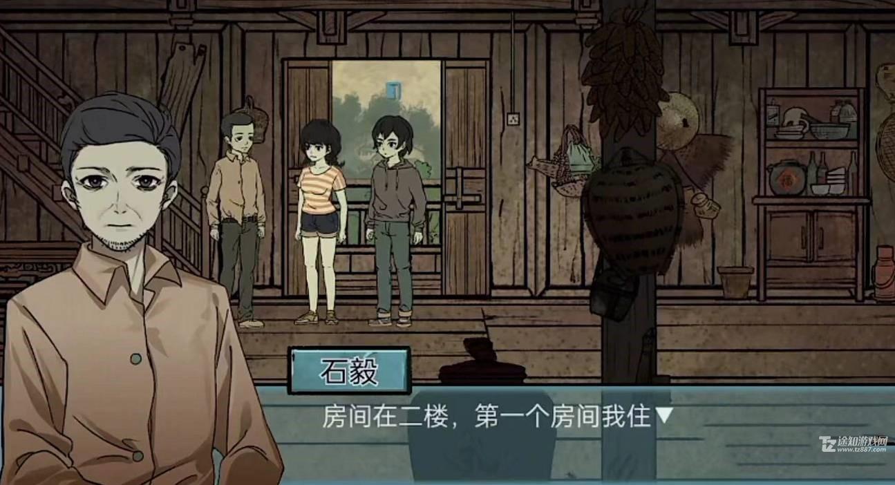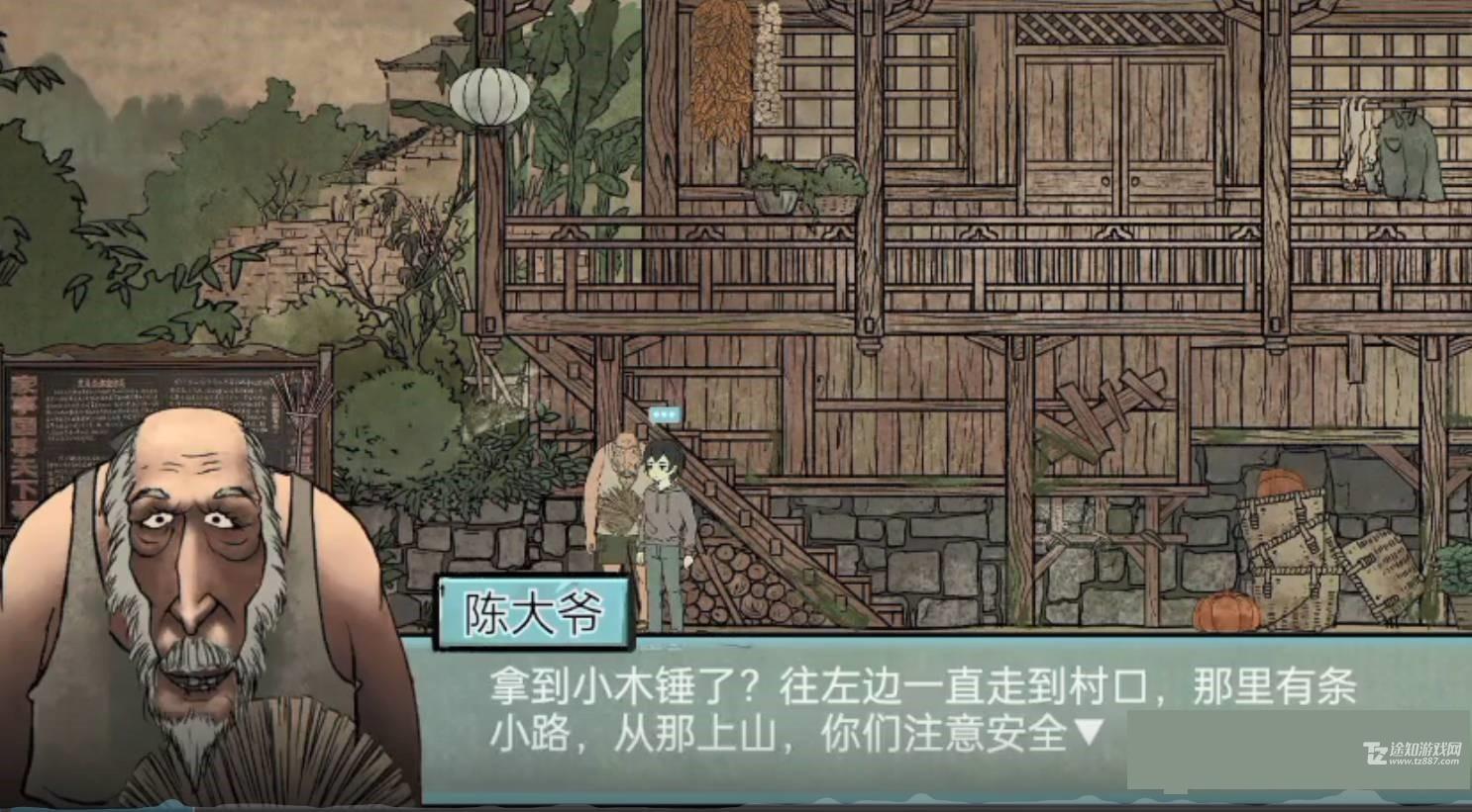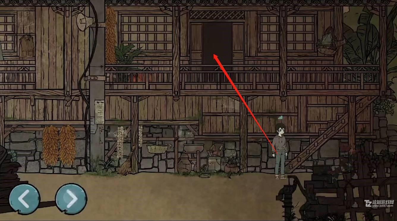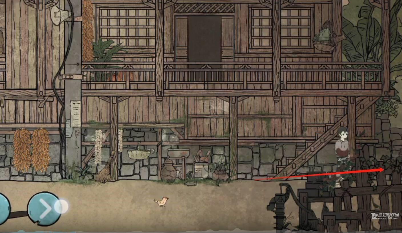 3.向右来到住所,交谈过后走到右边的竹梯旁上楼