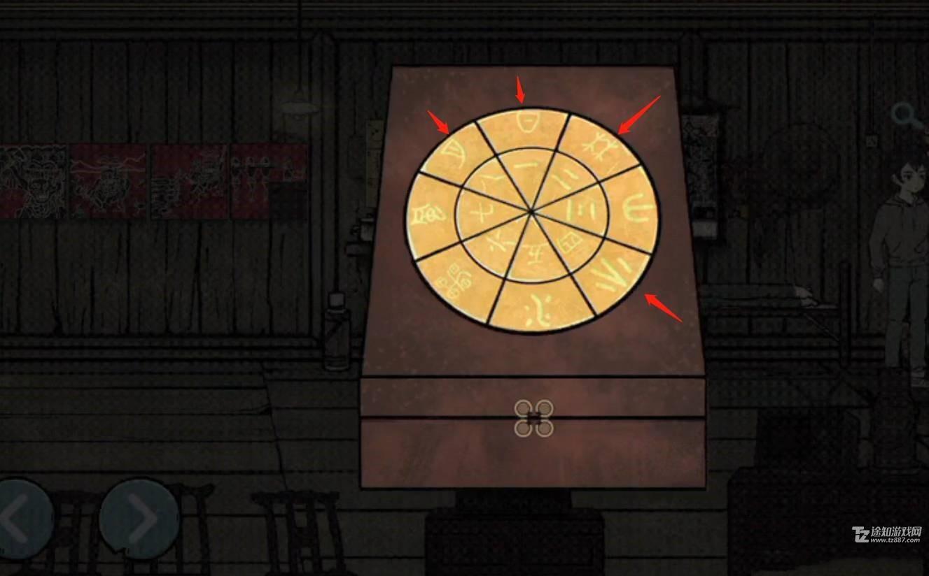 11.点击盒子上面的锁,根据4个数字的位置,输入相对应的符号