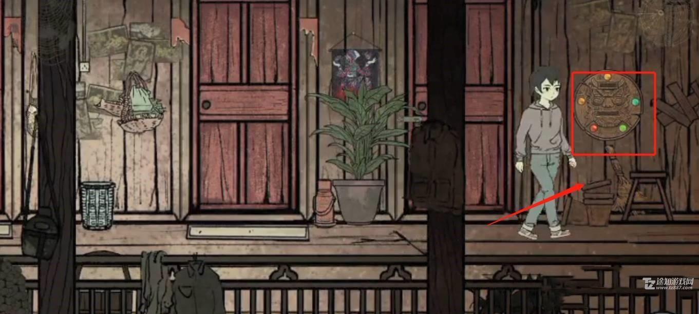 5.从室内的木梯走向2楼,来到第3个房间的门口,在竹篮子里得到【符号环】