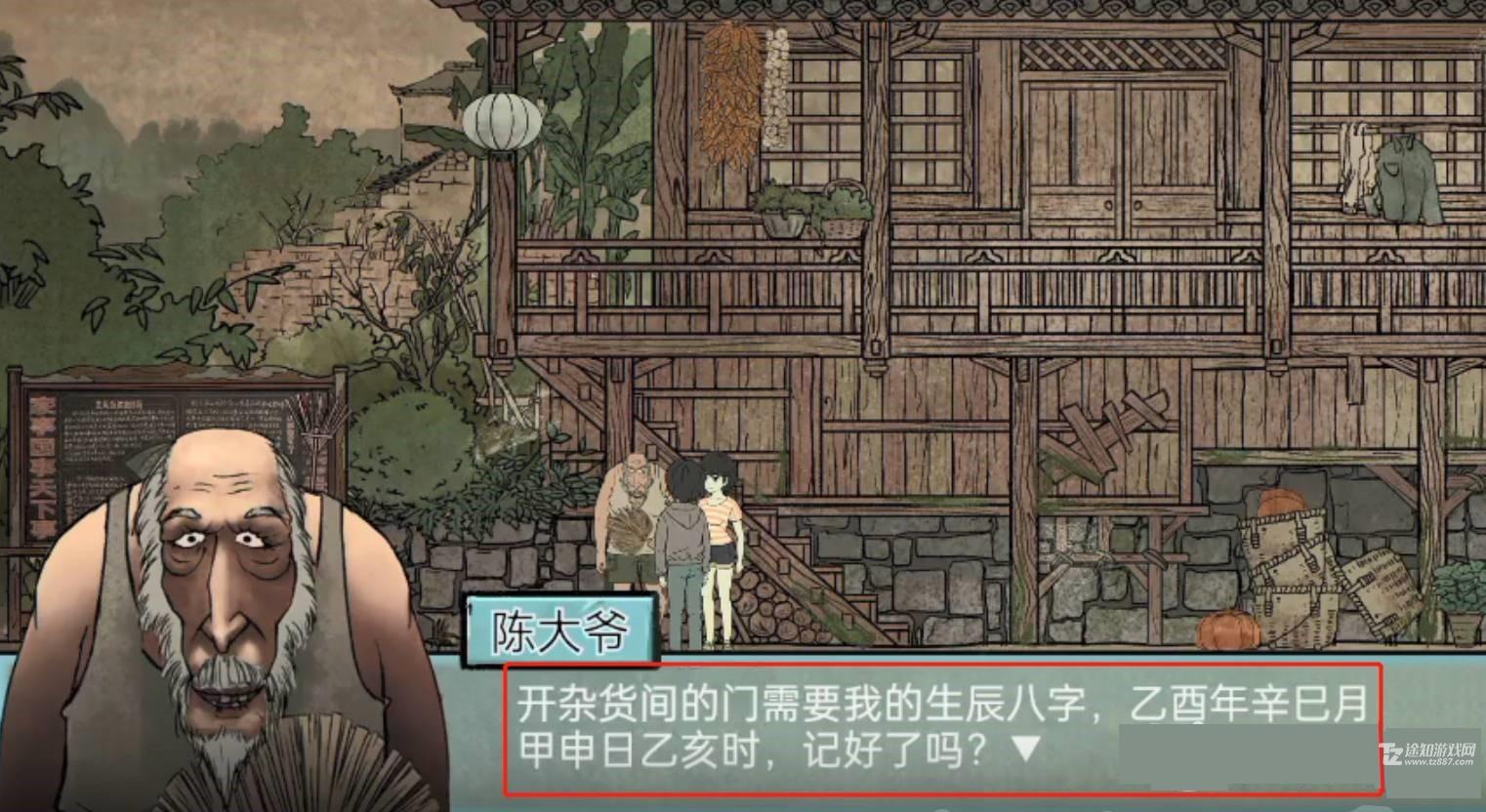 18.来到房子外面向左走,在和陈大爷的对话中得到陈大爷的生辰八字