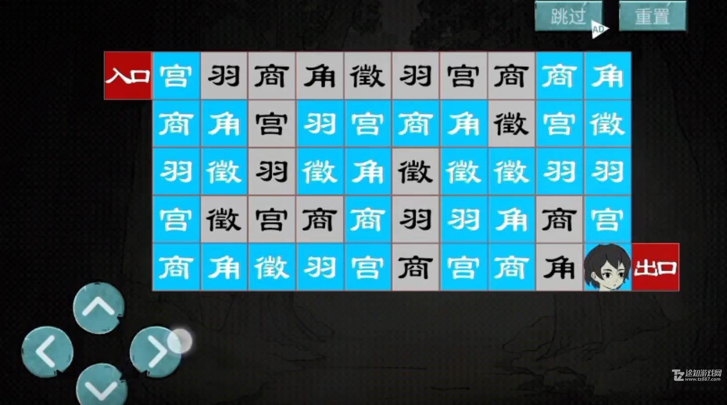 27.按照“宫商角徵羽”的顺序走到出口,并记住走过的路线,返回时需要
