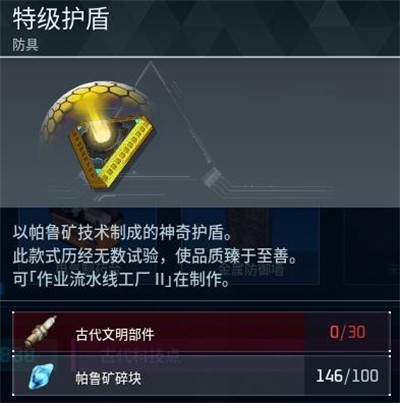 2、需要材料:古代文明部件30、帕鲁矿碎块100。