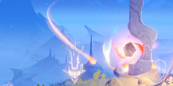 7、接着在浮岛上调查镌光铭印,然后调查岛上巨大的石碑开启试炼