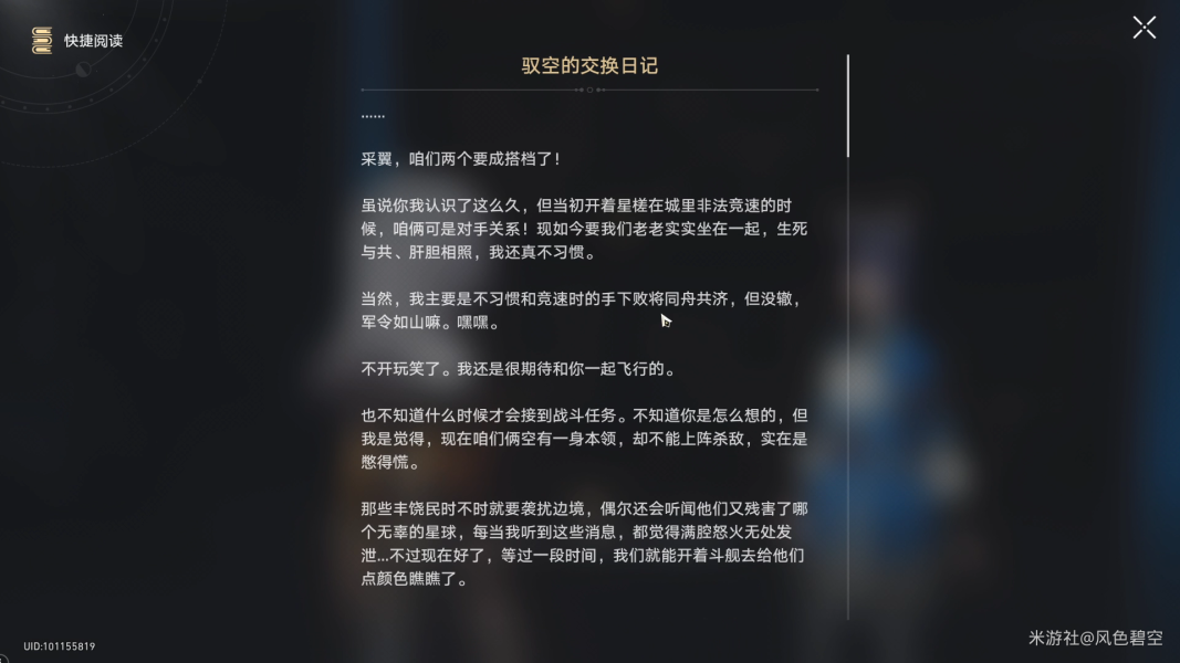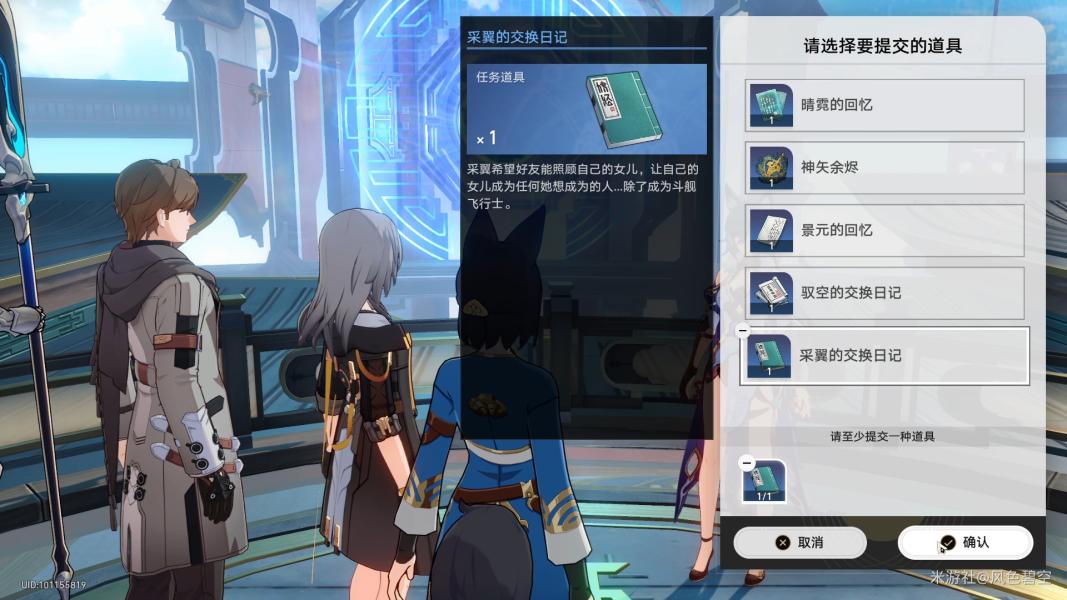 看完日记后,晴霓打算和驭空好好谈谈,让我们陪同一起去。离开天辰司找到驭空,提交采翼的日记进入剧情。