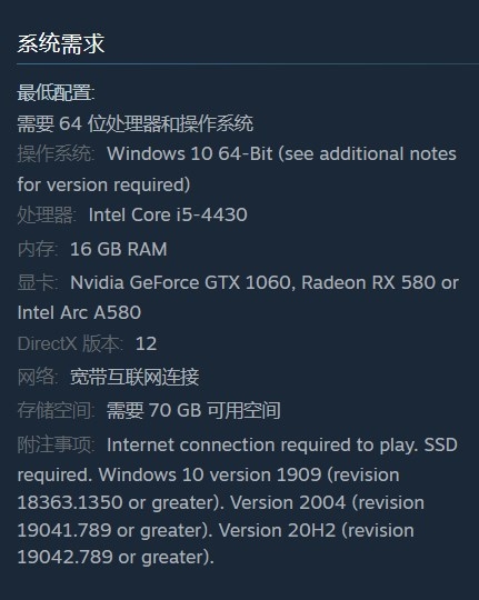显卡:Nvidia GeForce GTX 1060, Radeon RX 580 or Intel Arc A580