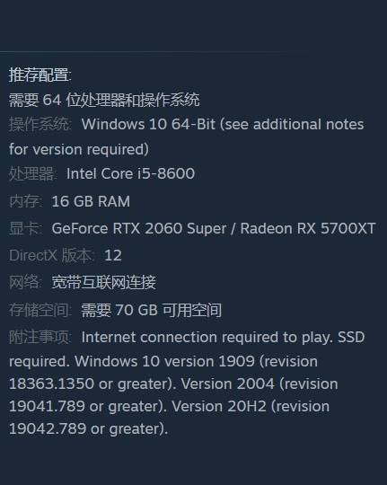 存储空间:需要70GB可用空间