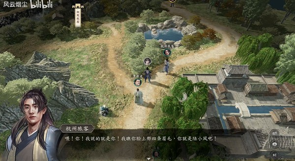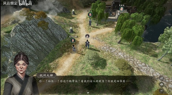 4、之后前往八方客栈,找到围观群众,进入战斗,2个血少的村民不能血量太低,半血左右会退场,剩下两个小温小柔可以击败。
