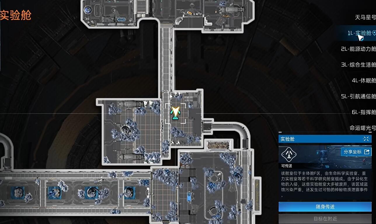 1、首先传送到一层实验舱的传送点。