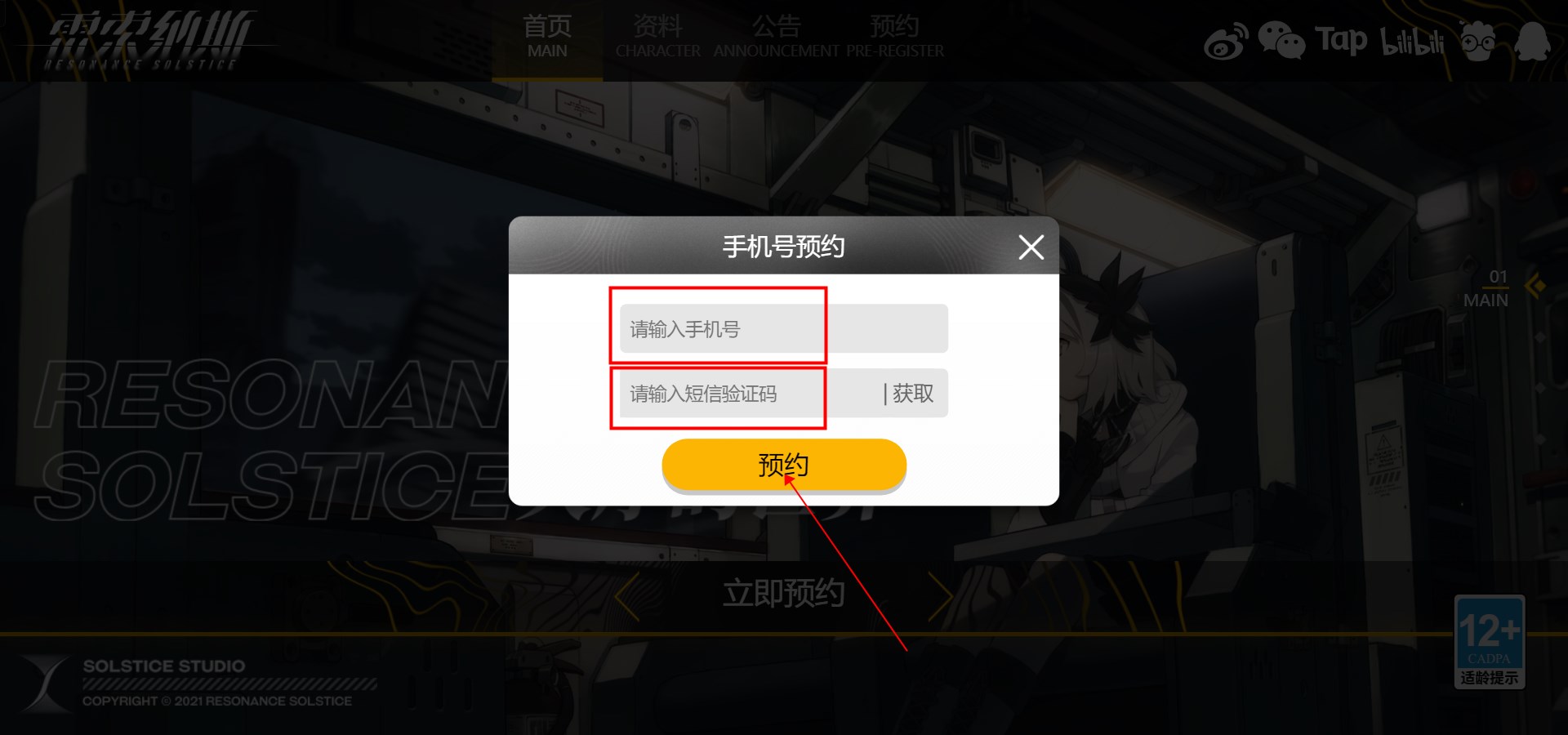3、输入手机号,获取短信验证码并输入,之后点击【预约】。