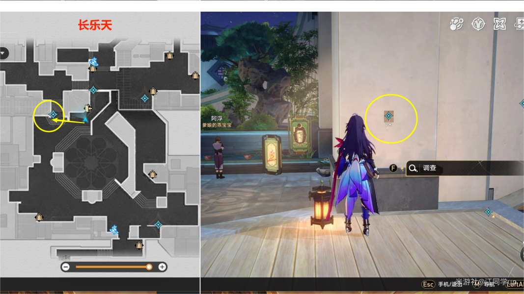 (2)然后直接来到下图黄色圈墙上位置【调查】即可,不用去其他剩下3个地方