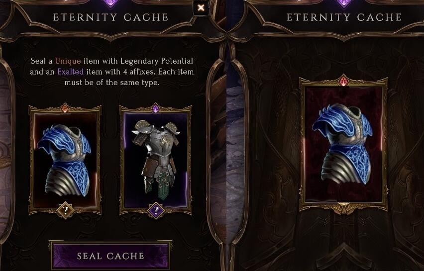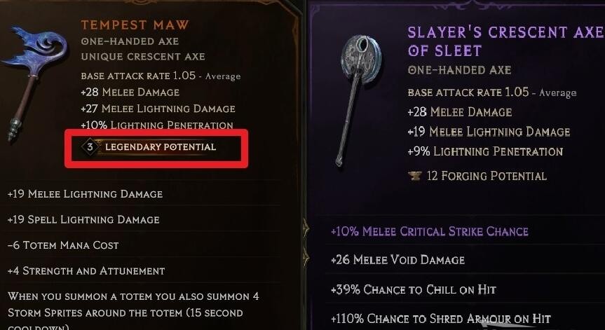 1、首先需要准备一把至少有一点传奇潜能的暗金装备,和与该装备类型相同拥有2个前缀和后缀的紫色装备。