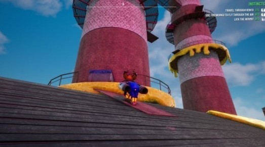 2、随后通过蓝色的盒子跳到塔上面的平台,然后跳到另一个塔。