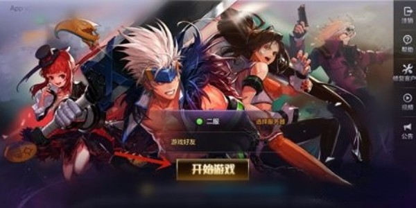 1、首先需要进入游戏,在登录界面选择登录大区,点击【开始游戏】。