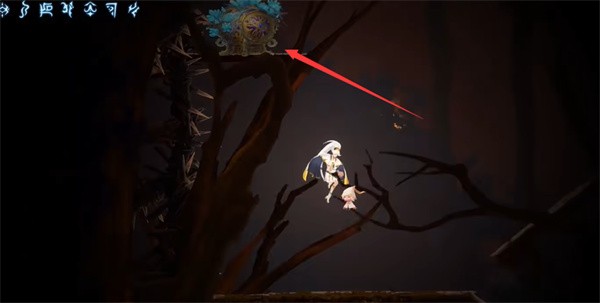 2、来到下图位置,交互获得【神性之花】,继续向上前进。