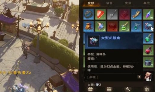 5、钓到的鱼会自动放入背包,使用后可提升属性。