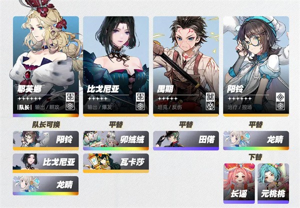 耶芙娜(阳铃/比戈尼亚/龙晴)、比格尼亚(卯绒绒/瓦卡莎)、禺期(田偌)、阳铃(龙晴/长谣/元桃桃)
