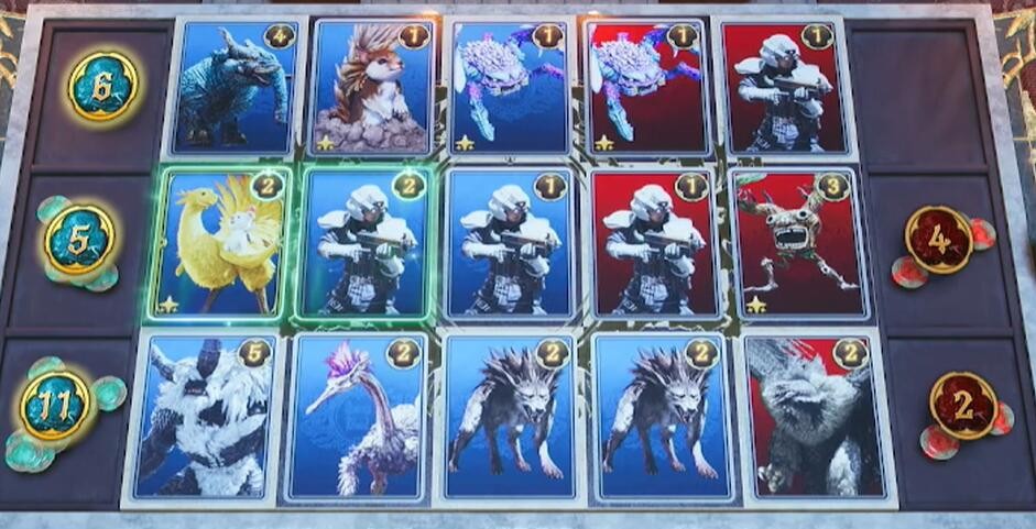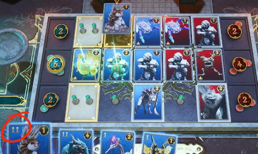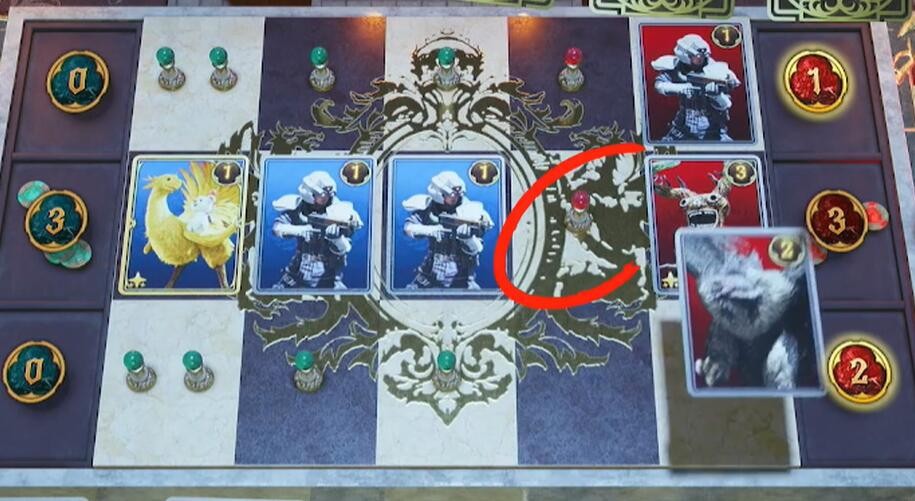 3、在如图所示的情况下,左上角有两个棋子的卡牌也可以登场了。