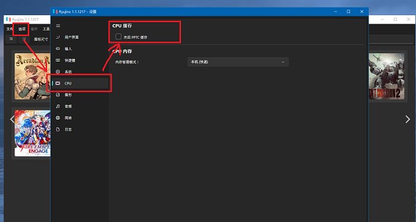 2、首先在模拟器的设置菜单内,关闭【PPTC缓存】,这个选项的位置如图,和图片一样不要勾上即可: