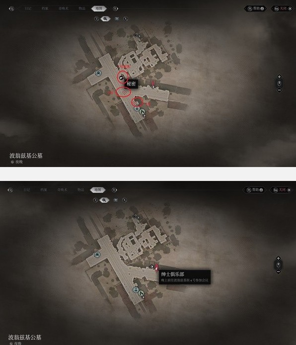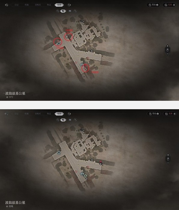 时间与位置:第一章波翁兹基公墓,白天,地图右下方兴趣点