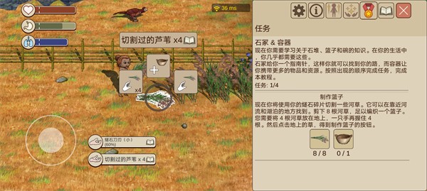利用我们在第一部分学过的割芦苇,放四拿四,即可如下图所示点击中间按钮制作篮子。
