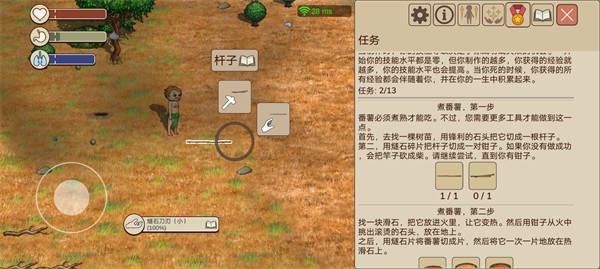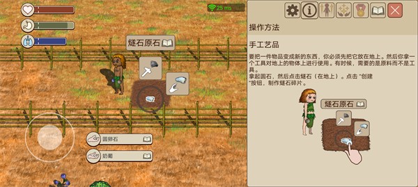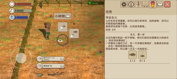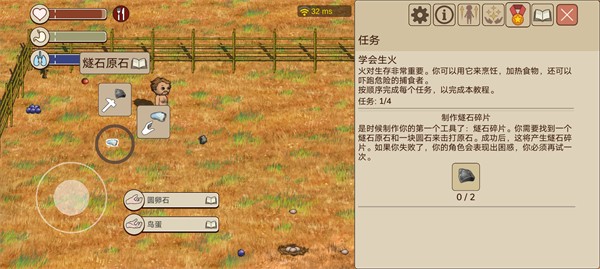 1、先将燧石碎片制作出来,然后在地上找到枯枝,即可制作挖掘木棍。