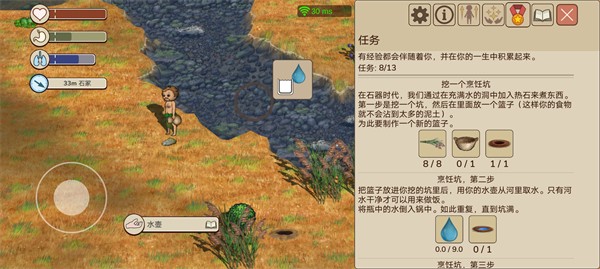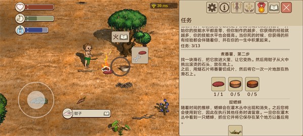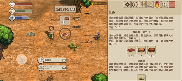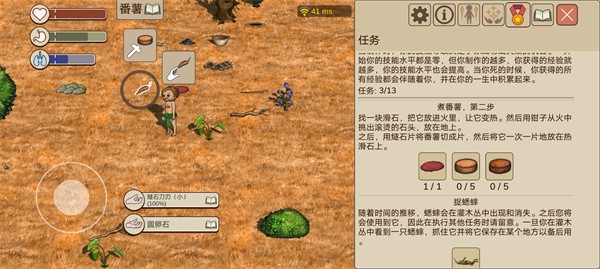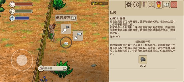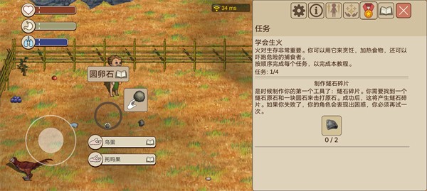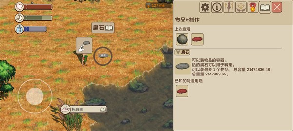 1、也就是采集,本质上和采摘差不多,但是要扔掉圆卵石,拿着燧石碎片。