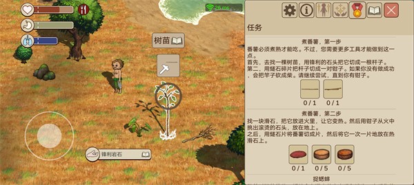 带着挖掘木棍去找如下图所示的番薯藤,进行挖掘即可获得番薯。