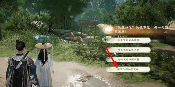 3、在对话中选择【向里飞则加官进禄】。
