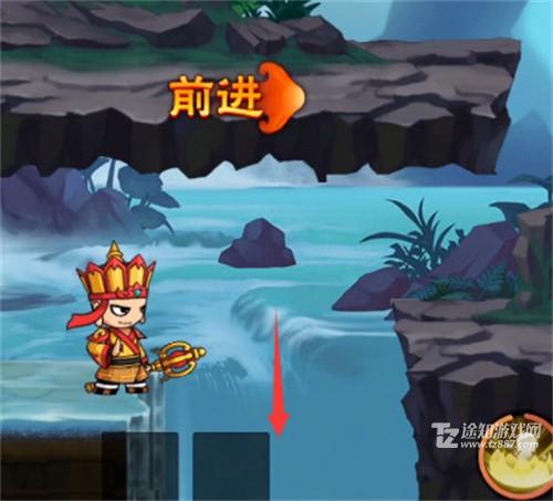 1、第一个的隐藏的关卡的位置在水帘洞,在图上的位置的一个悬崖上面跳下去就可以了。