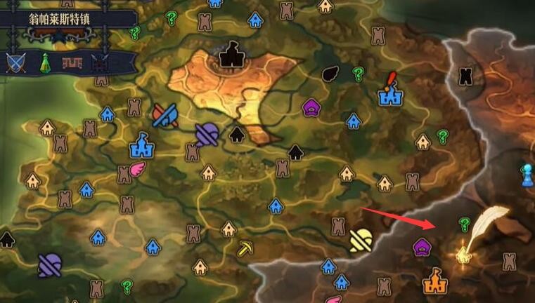 死神石板:准备30个该地区的木材,前往翁帕莱斯特镇,修好桥找到黑市商人,在黑市商人的右上角找到这个石板。