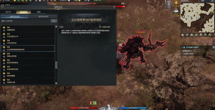 2、玩家需要击败图上的精英怪即可获得任务物品,使用后会接取名叫【达尔杨树果园的秘密场所任务】。