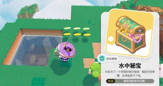 5、在钓鱼时只要在头顶出现感叹号的时候,点击钓杆就可以钓起鱼了,还可以钓到各种不同类型的水中秘宝。