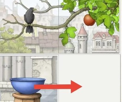 9、最后乌鸦就会离开,苹果也回掉落到碗中,到此第一章就结束了。