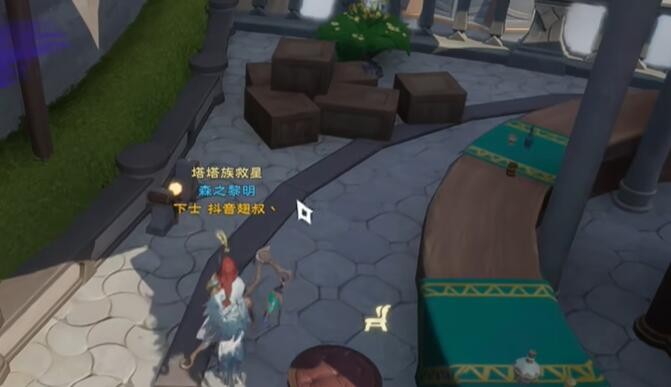 2、在中心广场上方左侧楼梯处的第二个大树下开启宝箱。