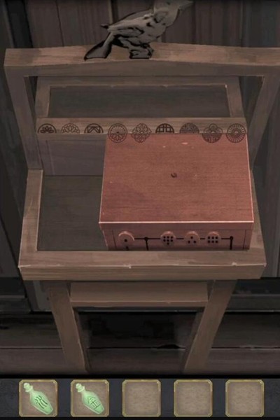 9、将鸟型钥匙放到有卡槽的门上打开左前方的门,调整花瓶得到【酒樽】。